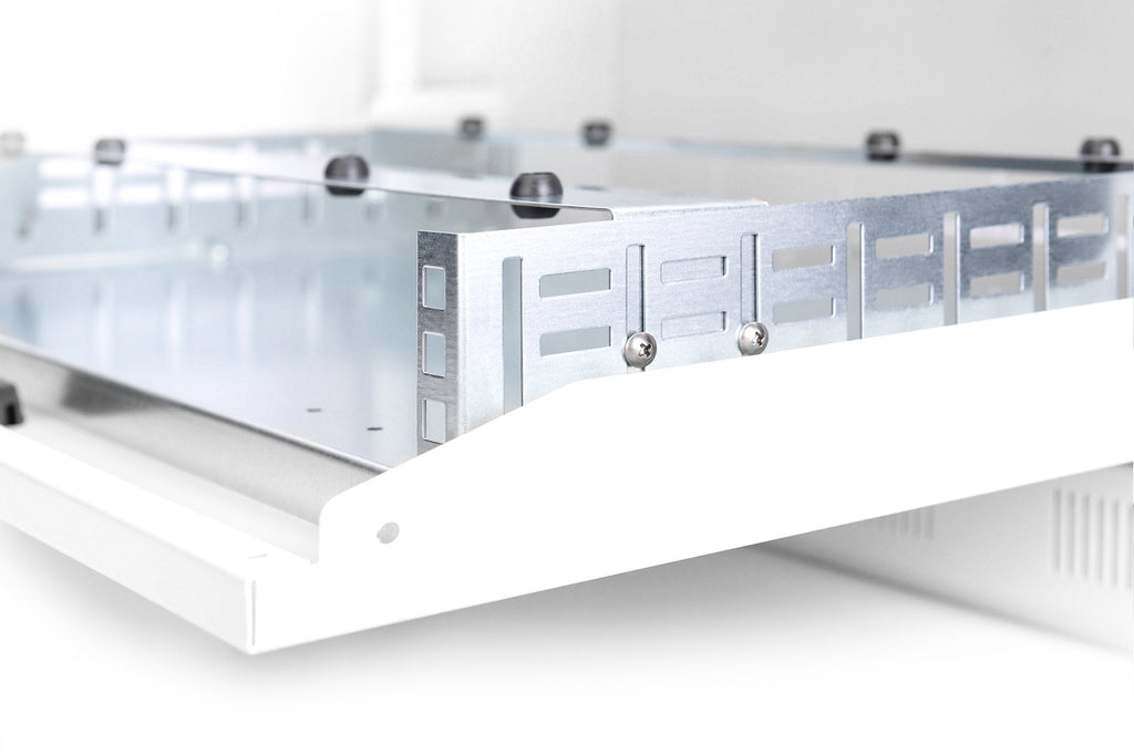 - Soporte de 482,6 mm (19”) de 2U para el montaje de una regleta de enchufes (PDU) en la parte superior interna