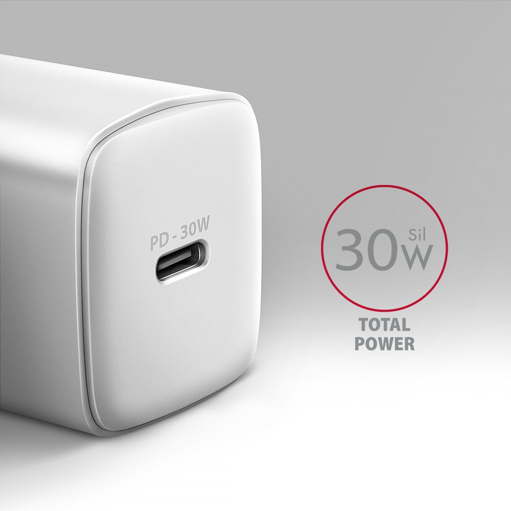 Axagon ACU-PD30W wall charger 1x QC3.0/AFC/FCP/PD type-C 30W white, Interior, Corriente alterna, Blanco