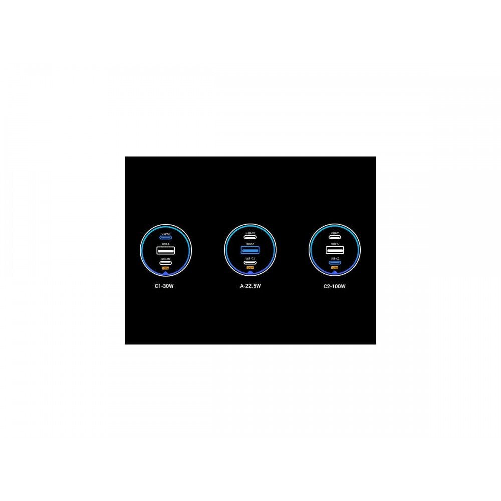 .Charges three devices simultaneously . It has one USB-A port and two USB-C ports.