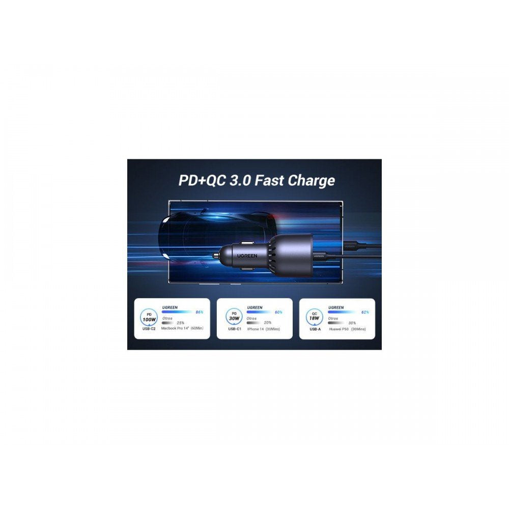 Ugreen 130W 3-Port Fast Car Char gray Auriculares, Ordenador portátil, Teléfono móvil, Portátil, Batería portátil, Teléfono Gris Encendedor de cigarrillos Auto