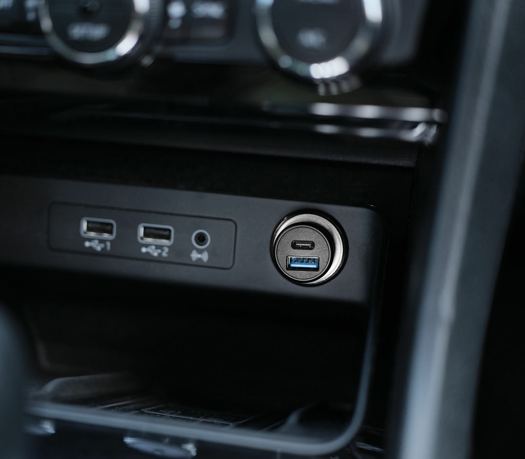 Cargador de 38 W para automóvil con puertos USB-C y USB-A para cargar dispositivos rápidamente en la carretera
