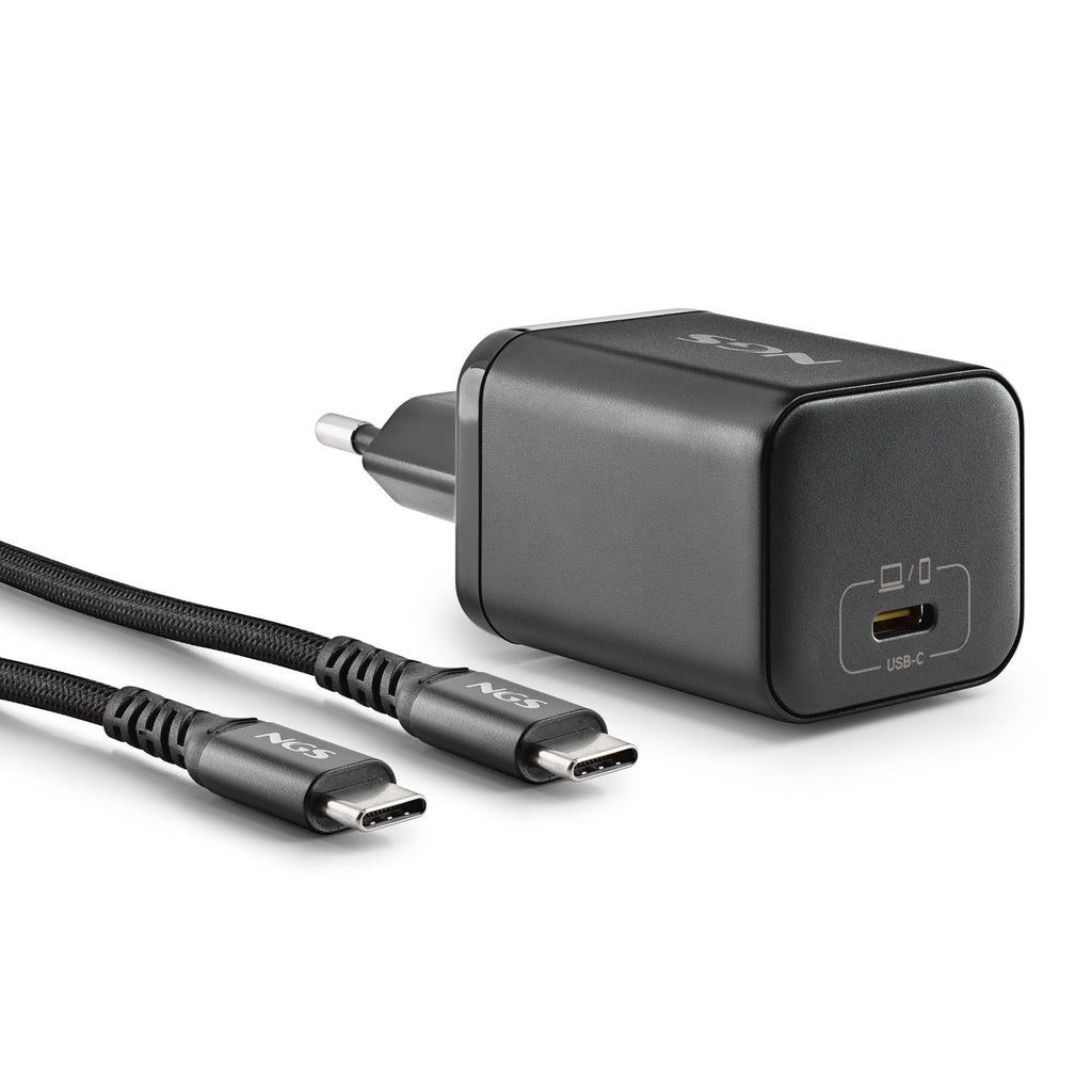 CARGADOR GAN DE PARED ULTRARÁPIDO DE 65W CON SALIDA TIPO USB-C y CABLE USB-C A USB-C DE 1,5 M