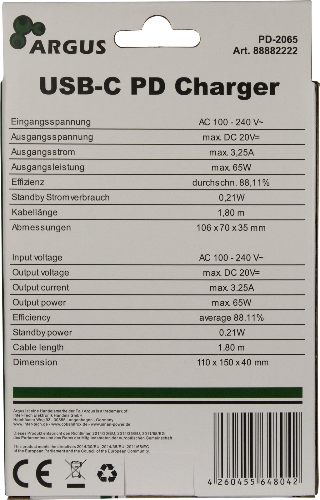 Inter-Tech PD-2065, Interior, Corriente alterna, 20 V, Negro