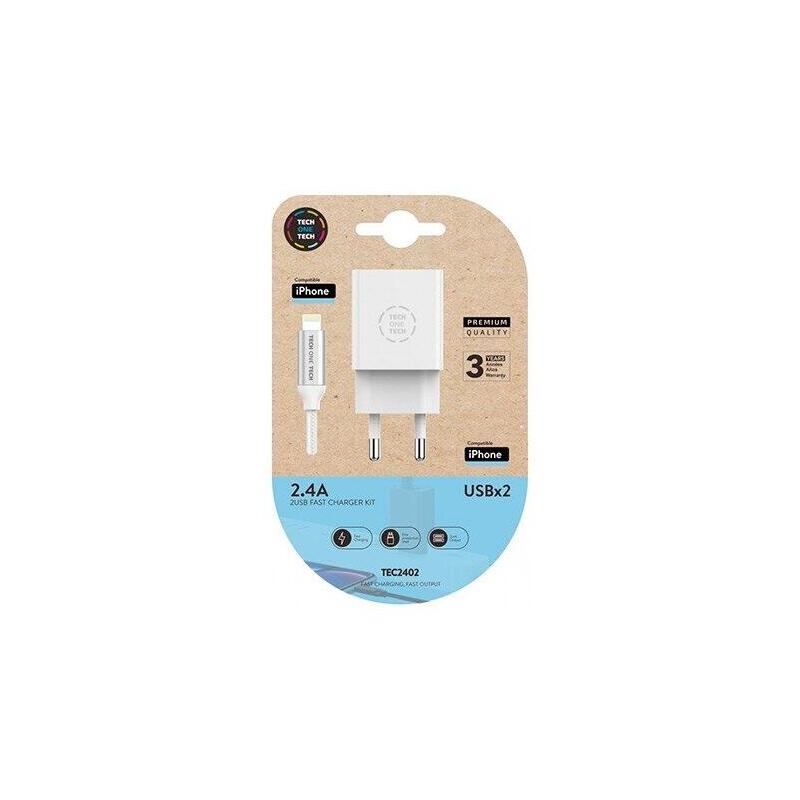 Cargador De Pared Tech One Tech Tec2402 2xusb + Cable Lightning 2.4a Blanco