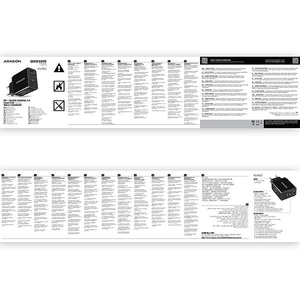 Axagon ACU-PQ22 cargador de dispositivo móvil Teléfono móvil, Batería portátil, Smartphone, Reloj inteligente, Tableta, Universal Negro Corriente alterna Carga rápida Interior