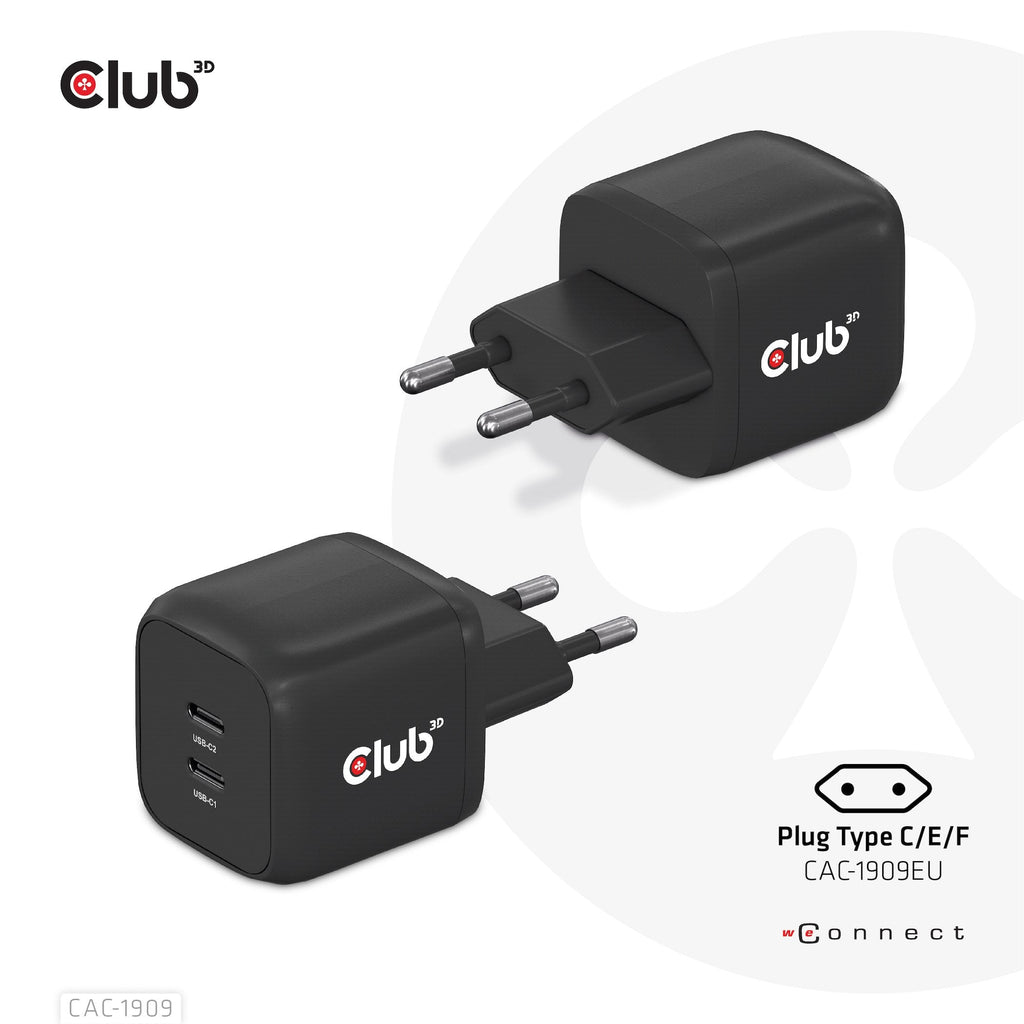 CLUB3D CAC-1909EU cargador de dispositivo móvil Teléfono móvil, Portátil, Smartphone Negro Corriente alterna Interior