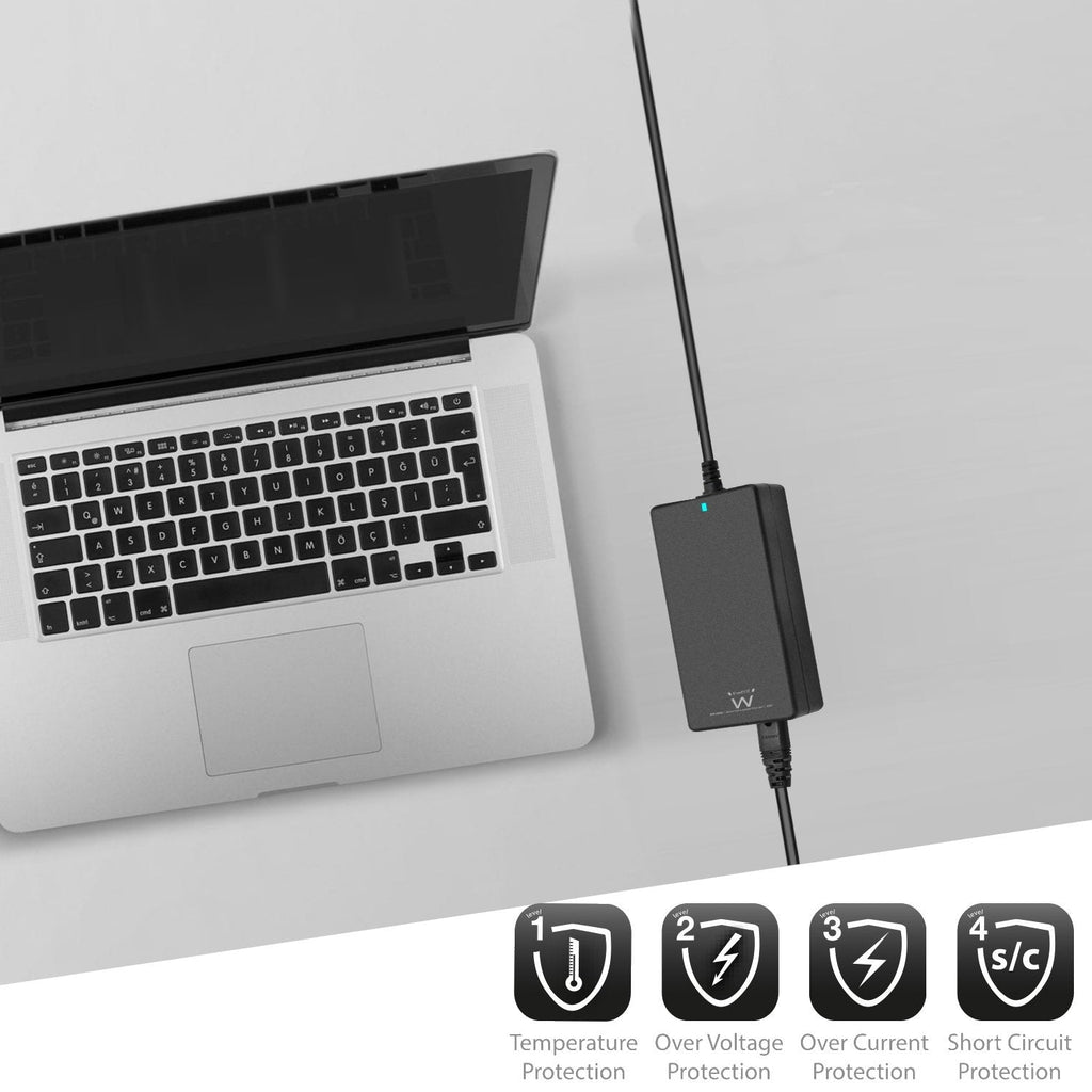 Todos los cargadores portátiles EWENT vienen con puntas sólidas de alta calidad. Se ajustan firmemente en la toma de corriente de su ordenador portátil. El cargador EWENT EW3965 viene con 10 consejos para los portátiles más comunes de Acer, HP, Dell, Asus, Sony, Toshiba, Compaq, Samsung, Delta, IBM, Lenovo, LG, Liteon, NEC, Fujitsu, Gateway. Esta fuente de alimentación universal ajusta su voltaje de salida usando una técnica inteligente que detecta qué enchufe de alimentación está conectado. Para encontrar el tapón que se adapte a su cuaderno, no sólo no comprobar si el enchufe queda físicamente a la toma de corriente de su dispositivo, sino también comprobar si el voltaje que se indica en la punta del adaptador es correcto para su computadora portátil. Compruebe la caja de regalo de productos para una visión general de la tensión de cada cable de alimentación.