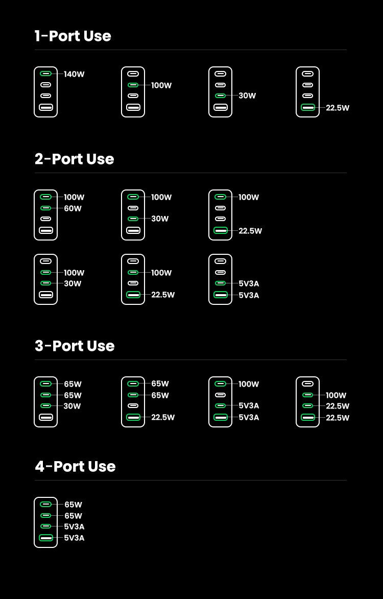 Ugreen Nexode Pro 160W GaN Charger with USB-C Cable, Interior, Corriente alterna, Negro, Gris