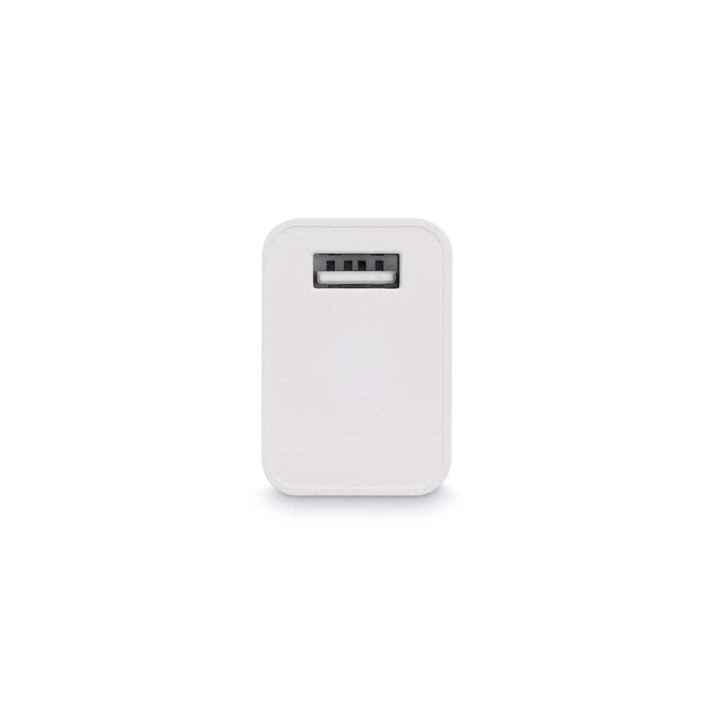 Cargador de red con potencia de 5V/2.4A con puerto USB para cargar smartphones y tablets. Color blanco.