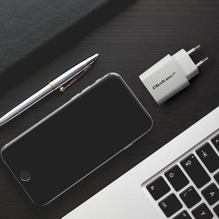 Qoltec 52375 cargador de dispositivo móvil Auriculares, Portátil, Consola de juegos portátil, Batería portátil, Smartphone, Reloj inteligente, Tableta Blanco Corriente alterna Carga rápida Interior