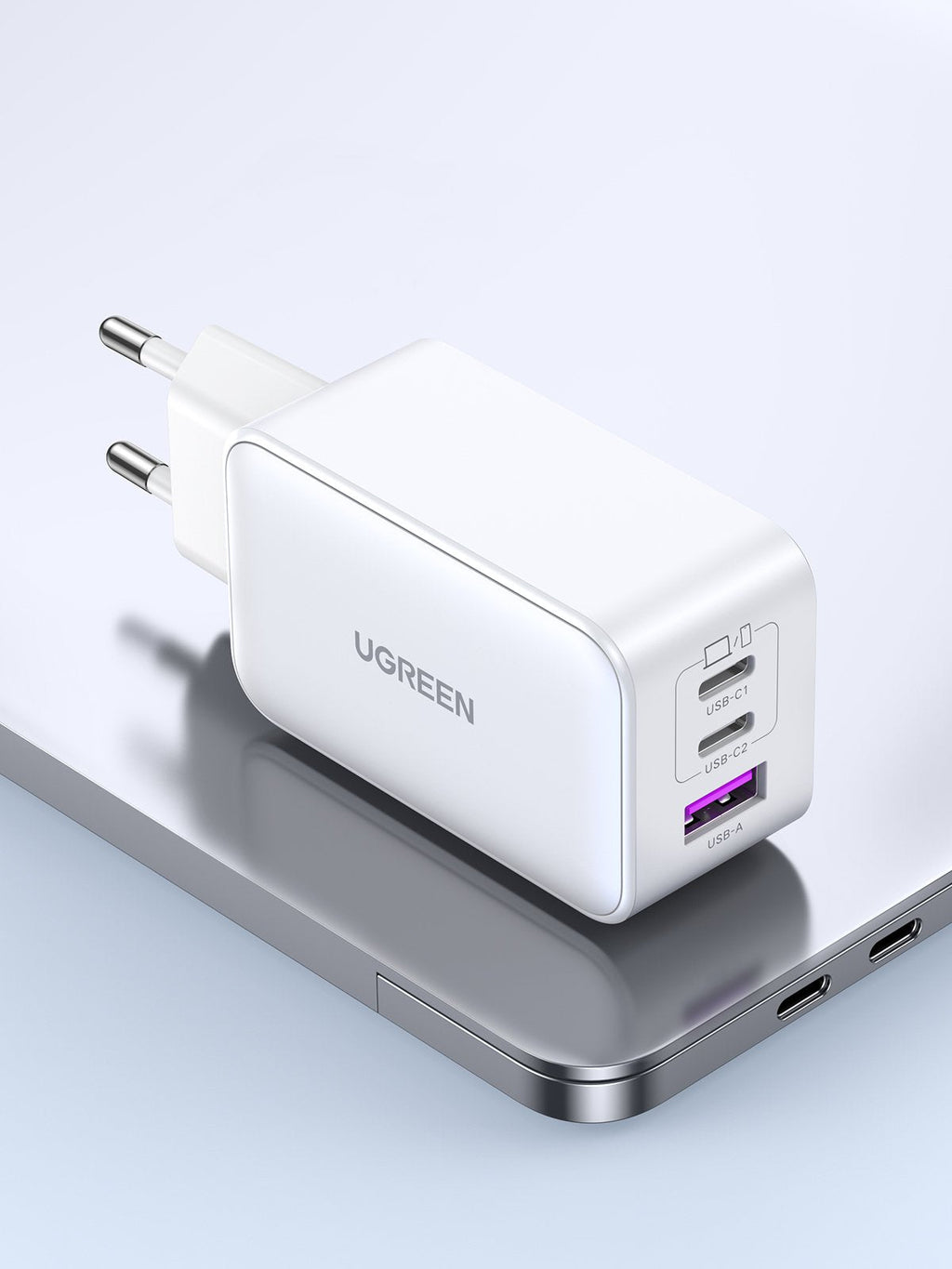 Ugreen Nexode USB-A+2*USB-C 65W GaN Tech Fast Charger White Lector de libros electrónicos, Auriculares, Auriculares, Teléfono IP, Teclado, Ordenador portátil, Teléfono móvil, Ratón, Portátil, Consola de juegos portátil, Batería portátil, Stylus (lápiz digital), Tableta, Teléfono, Ver Blanco Corriente alterna Carga rápida Interior
