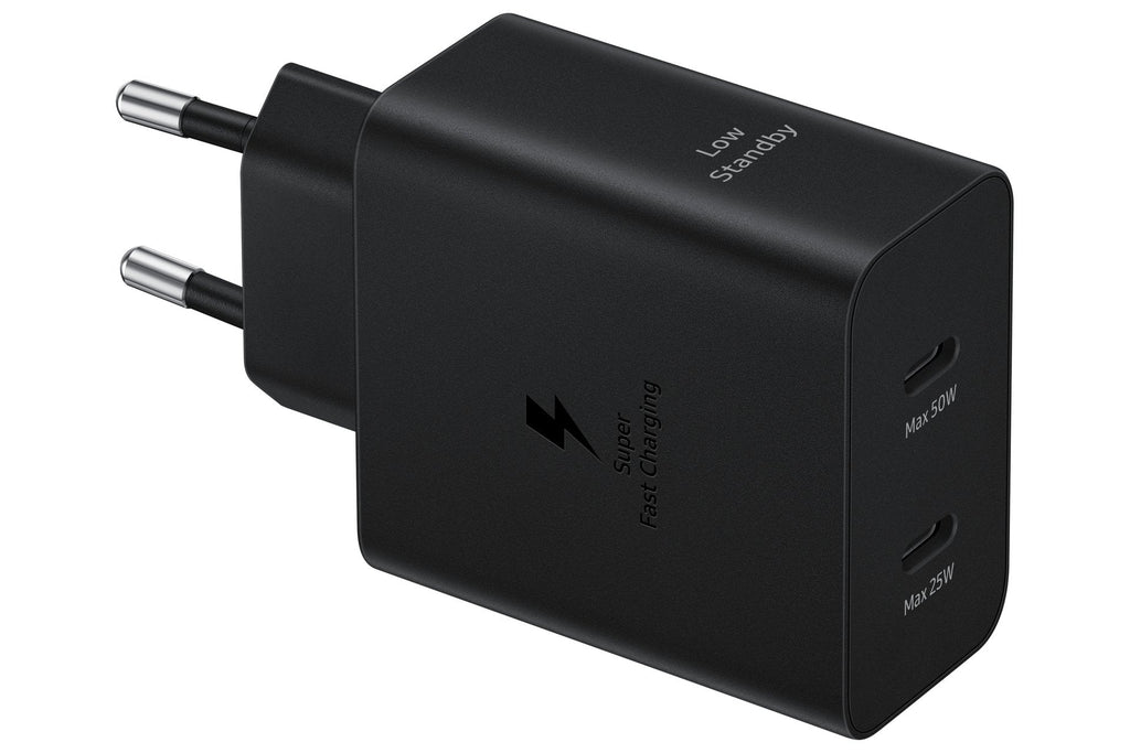 El adaptador de corriente de 50 W tiene un consumo reducido en espera para que puedas ahorrar energía sin renunciar a su eficacia. Con este adaptador, todos tus dispositivos Galaxy se cargan a la perfección para estar listos para tus aventuras creativas y profesionales.