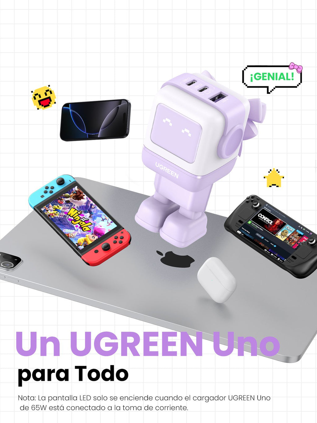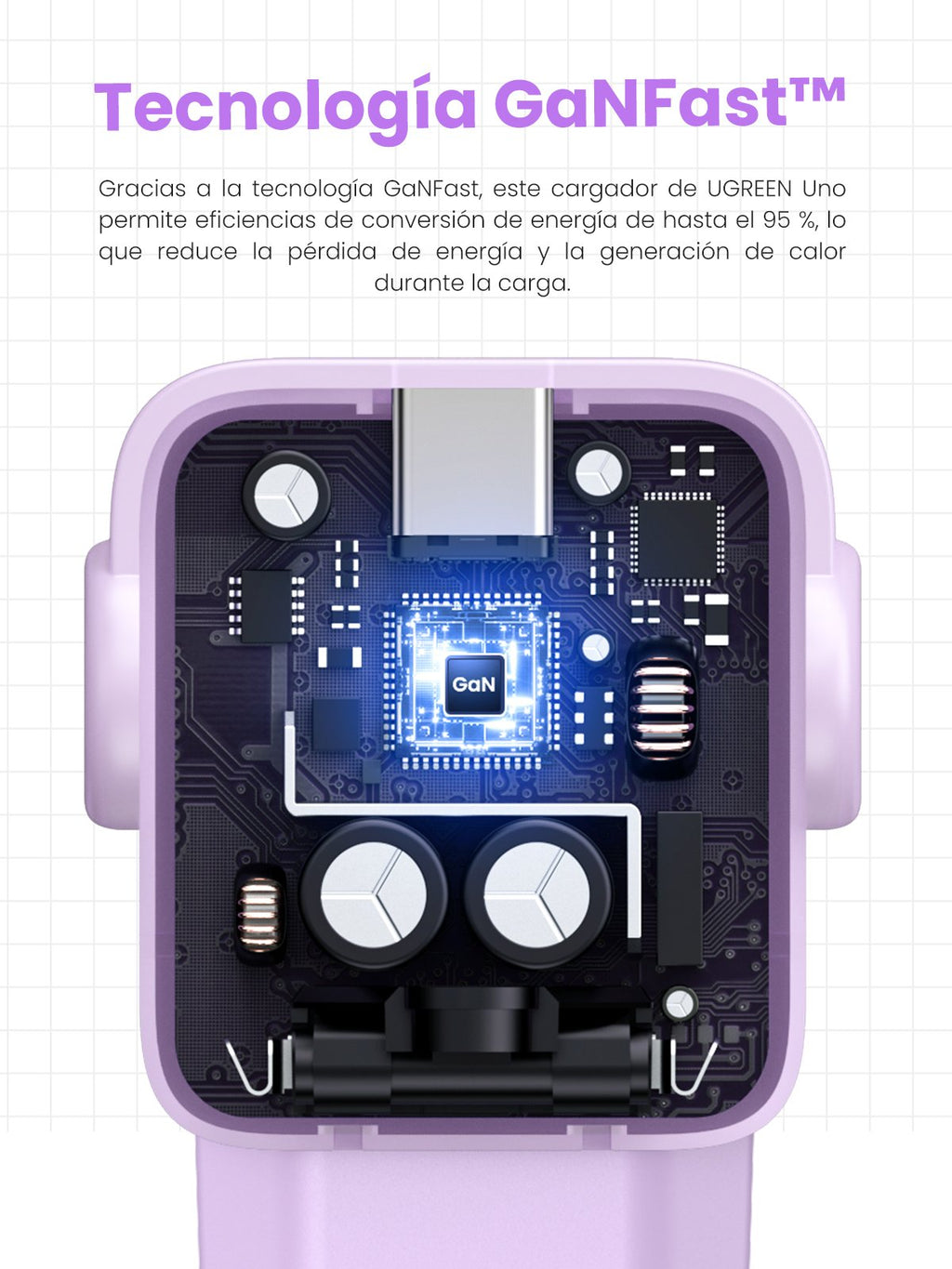 Ugreen Nexode RG 65W 3-Port GaN Ordenador portátil, Teléfono móvil, Ratón, Portátil, Batería portátil, Teléfono Rosa Corriente alterna Carga rápida Interior