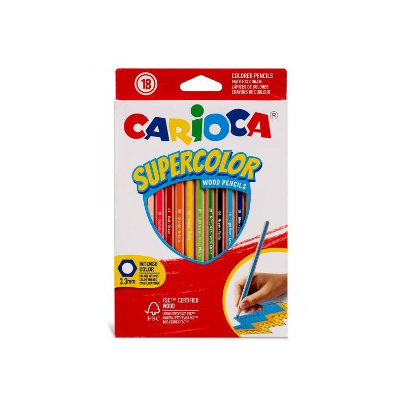 Carioca Supercolor Pack De 18 Lapices De Madera - Cuerpo Hexagonal - Colores Intensos Y Gran Opacidad - 3.3mm De Grosor