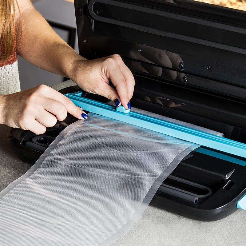 Envasadora de alimentos al vacío que vacía y sella para conservar ingredientes y comidas preparadas frescas hasta 5 veces más tiempo.