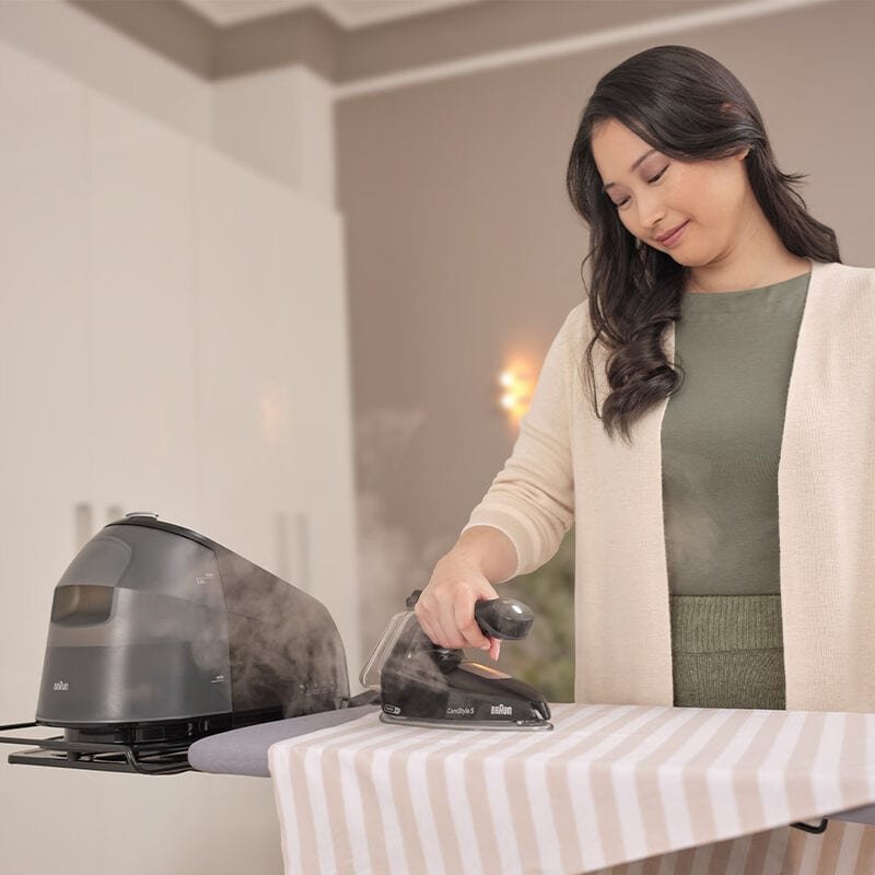 Mejora tu rutina de planchado y ahorra tiempo para lo que realmente importa. La nueva CareStyle 5 de Braun es ultrapotente y proporciona hasta 150 g/min gracias a la innovadora tecnología PowerSteam. Disfruta de resultados de planchado profesional incluso con las arrugas más difíciles.
