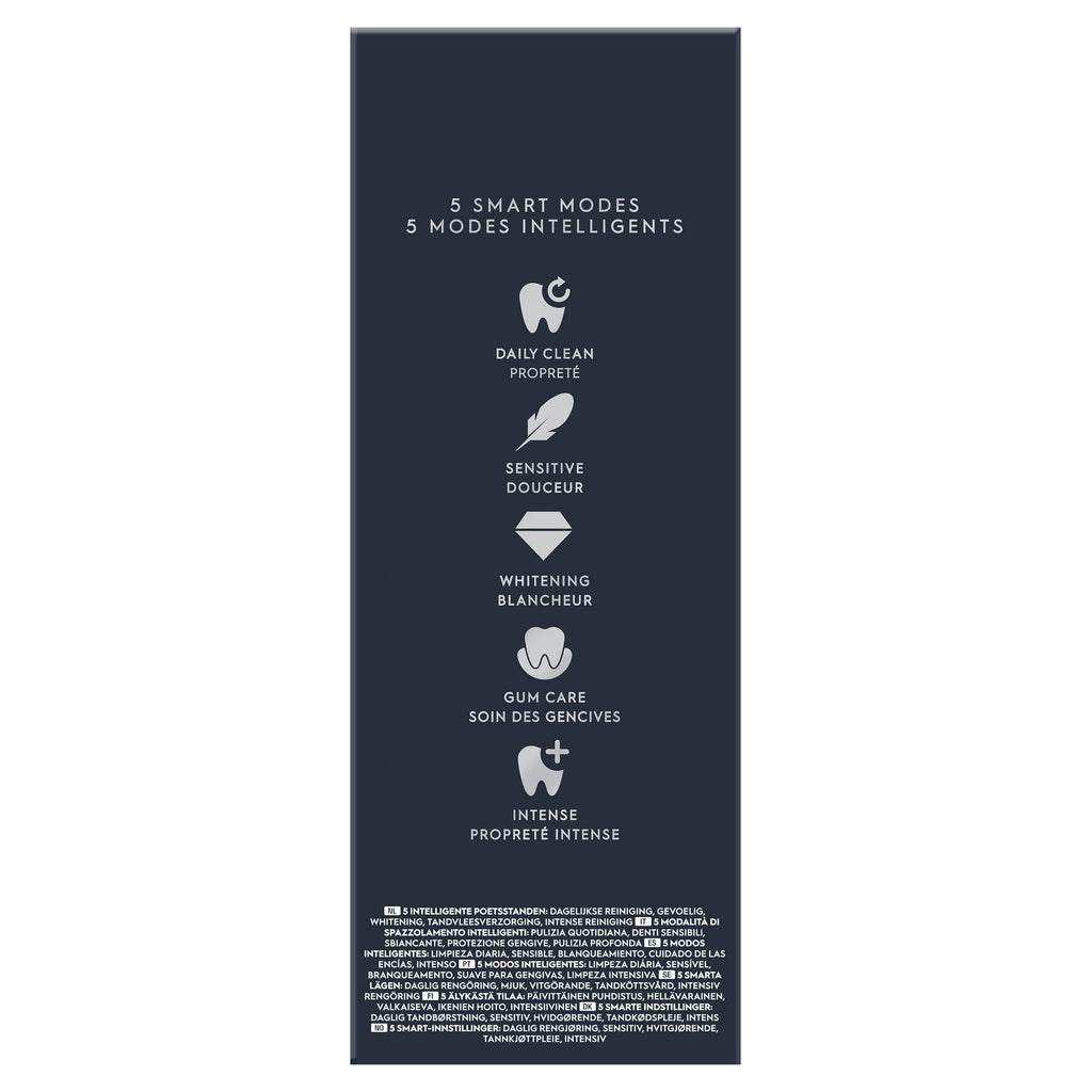 - Modos del cepillo de dientes: Cuidados diarios, Limpieza profunda, Cuidado de las encías, Sensible, Blanqueador