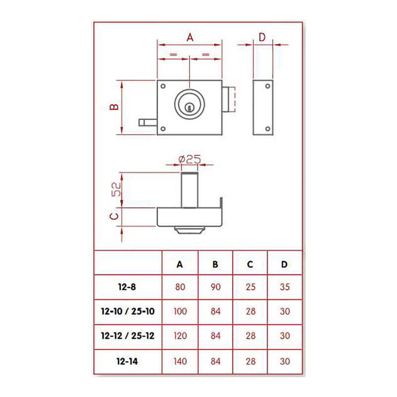Cerradura De Sobreponer Golpe Y Llave. Derecha Jis 12-10d Jis