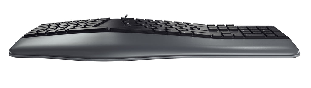 y puede mitigarse de manera sencilla con un teclado ergonómico, como el CHERRY KC 4500 ERGO. Gracias a su diseño especial, las manos y los brazos adoptan de por sí una postura más natural. La tensión en sus hombros y en su espalda se alivia gracias a una postura relajada que reduce el estrés. El reposamanos extra blando con espuma viscoelástica evita puntos de presión y permite apoyar cómodamente las manos.
