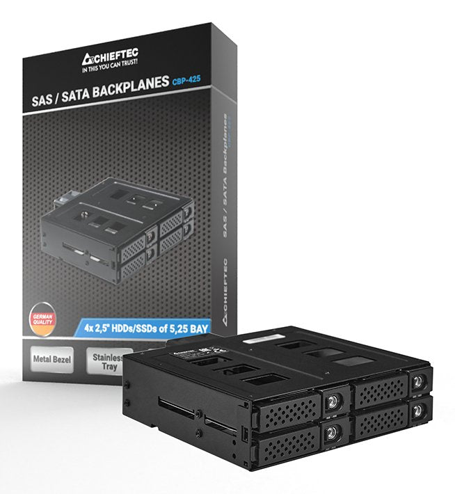 Chieftec CBP-425, Placa de bus común o backplane, Negro, 2.5/3.5/5.25", SATA, SATA II, SATA III, Serial Attached SCSI (SAS), SAS, SATA, SATA II, SATA III, 2.5"