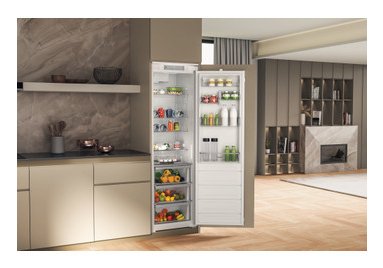 Las características de este figorífico integrable Whirlpool: balcón para botellas. Sensores 6th SENSE, que automáticamente reducen reducen la temperatura de tu electrodoméstico cuando se almacenan nuevos alimentos, reduciendo el consumo energético.