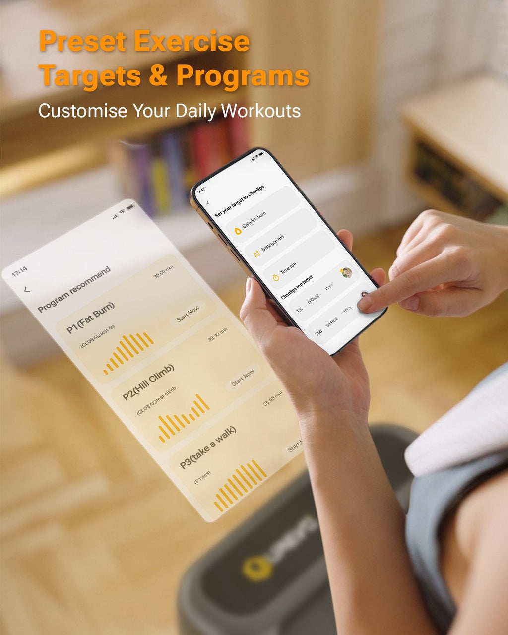 - Parámetros de entrenamiento mostrados: Calorías, Monitor, Velocidad, Step counter, Tiempo
