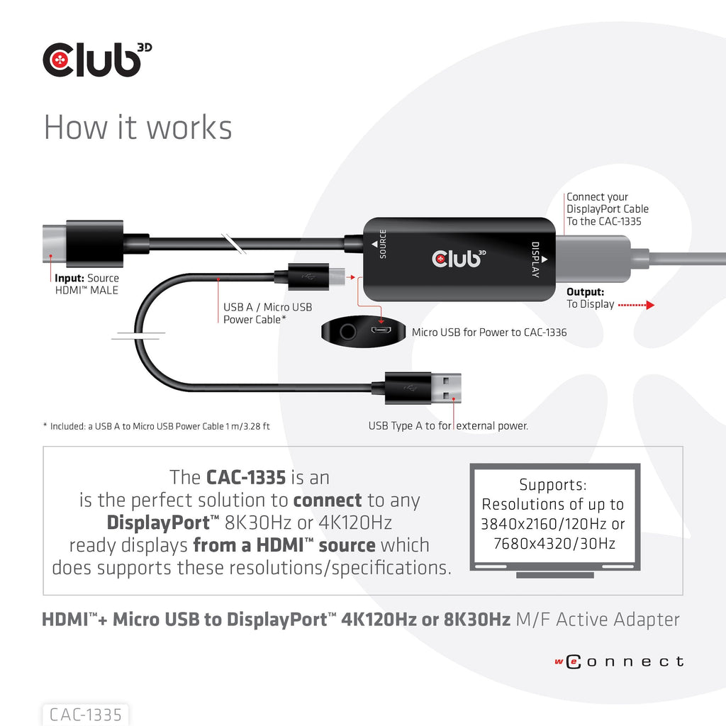 CLUB3D CAC-1335 adaptador de cable de vídeo 1 m HDMI + USB DisplayPort