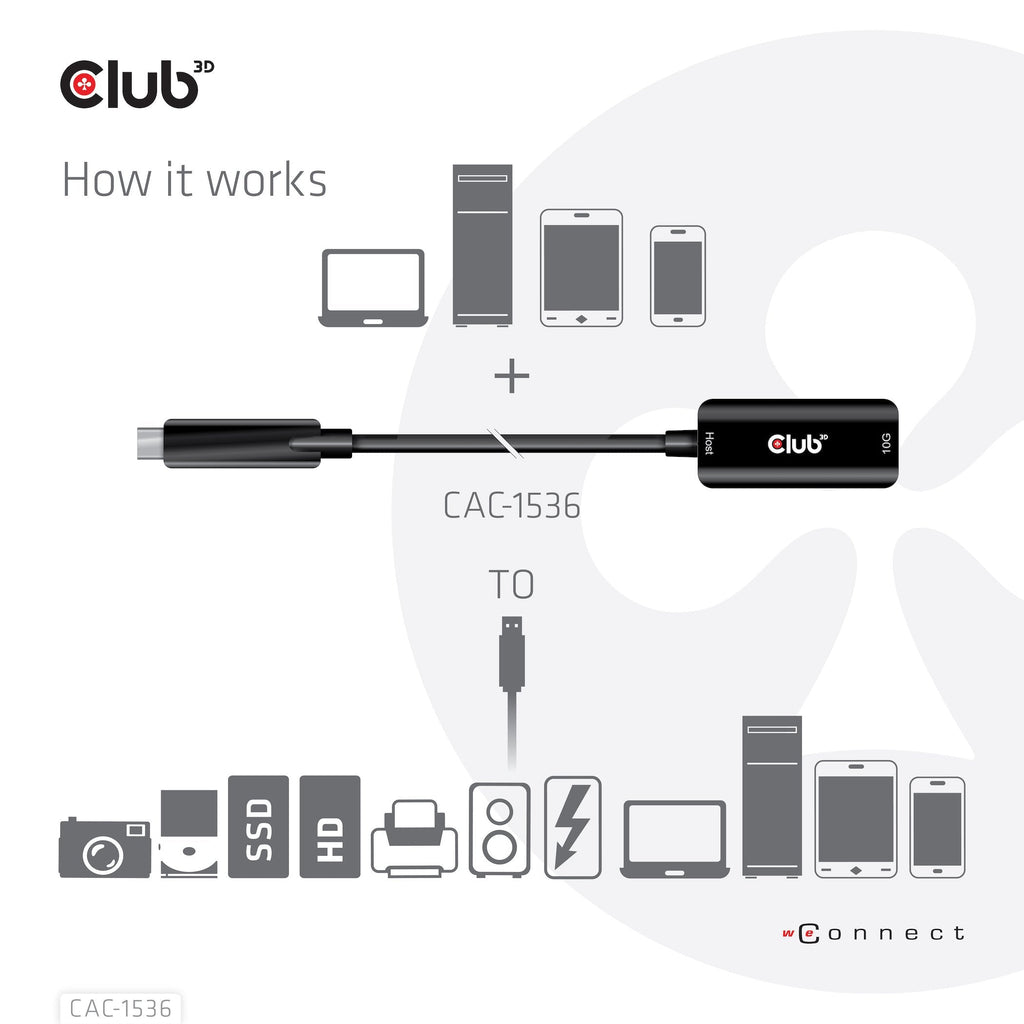CLUB3D CAC-1536, 5 m, USB C, USB A, USB 3.2 Gen 2 (3.1 Gen 2), 10 Gbit/s, Negro