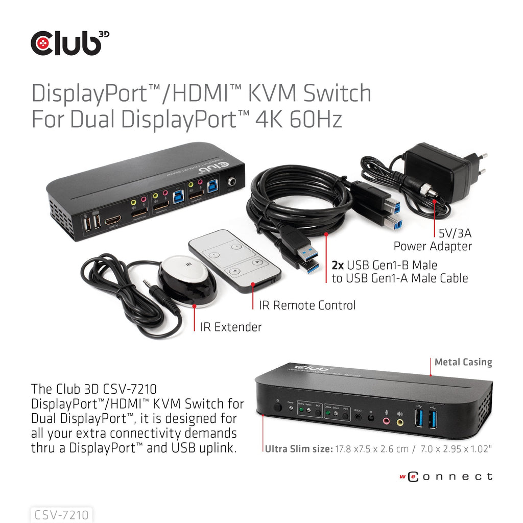 CLUB3D CSV-7210, 4096 x 2160 Pixeles, 4K Ultra HD, 12 W, Negro