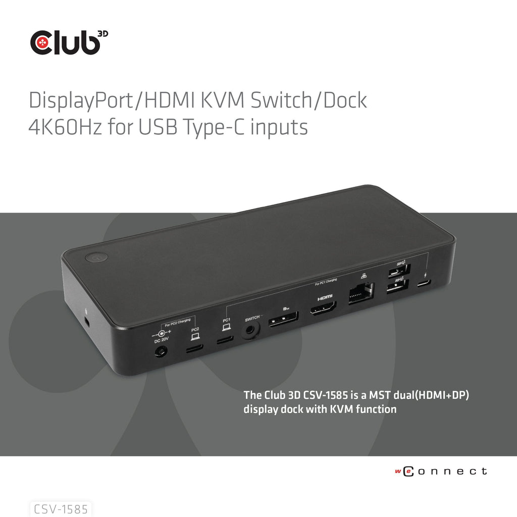 El Club 3D CSV-1585 es un dock de pantalla dual(HDMI™+DP™) MST con fun-