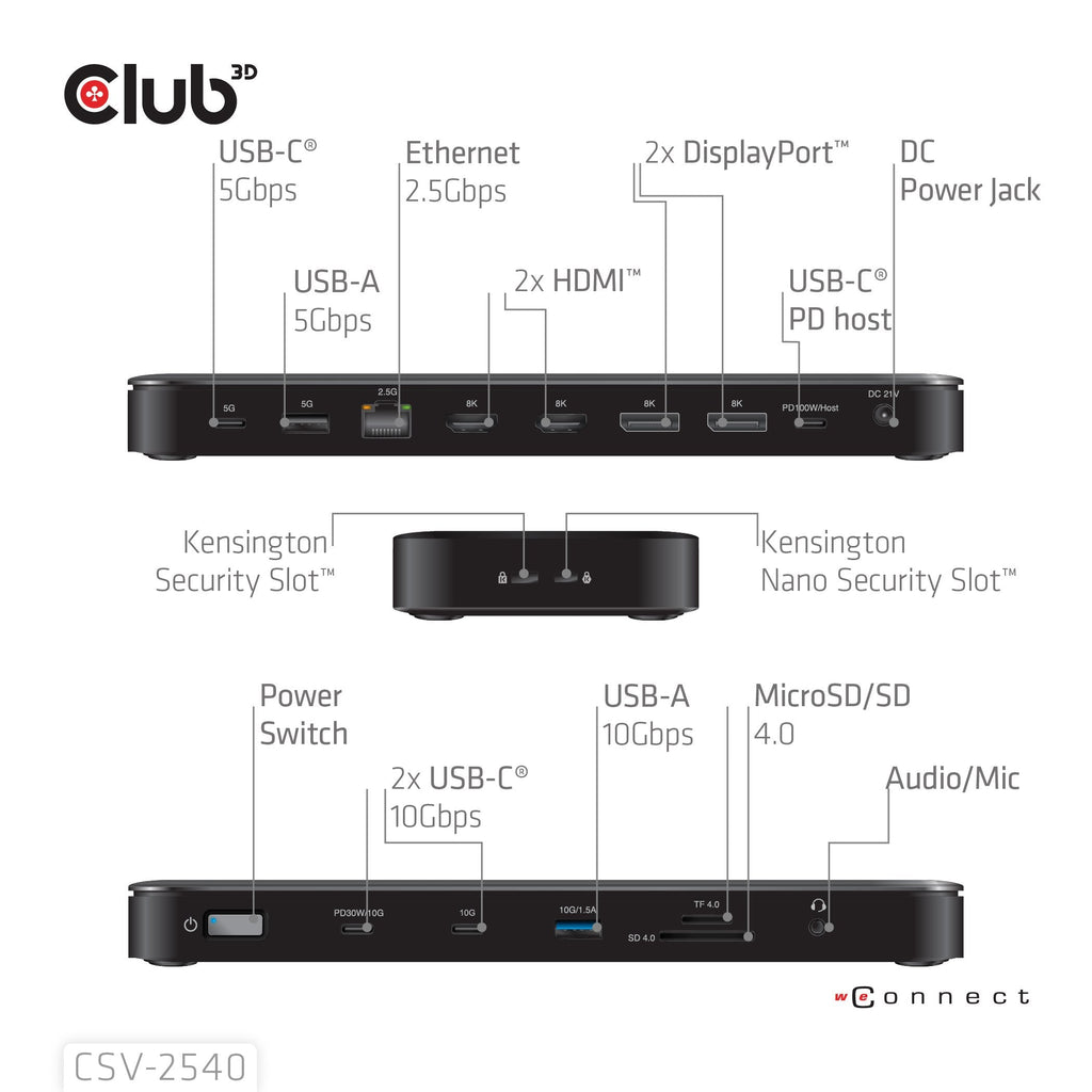 CLUB3D 14-1 USB-C Quad Display Docking Station, Acoplamiento, USB4