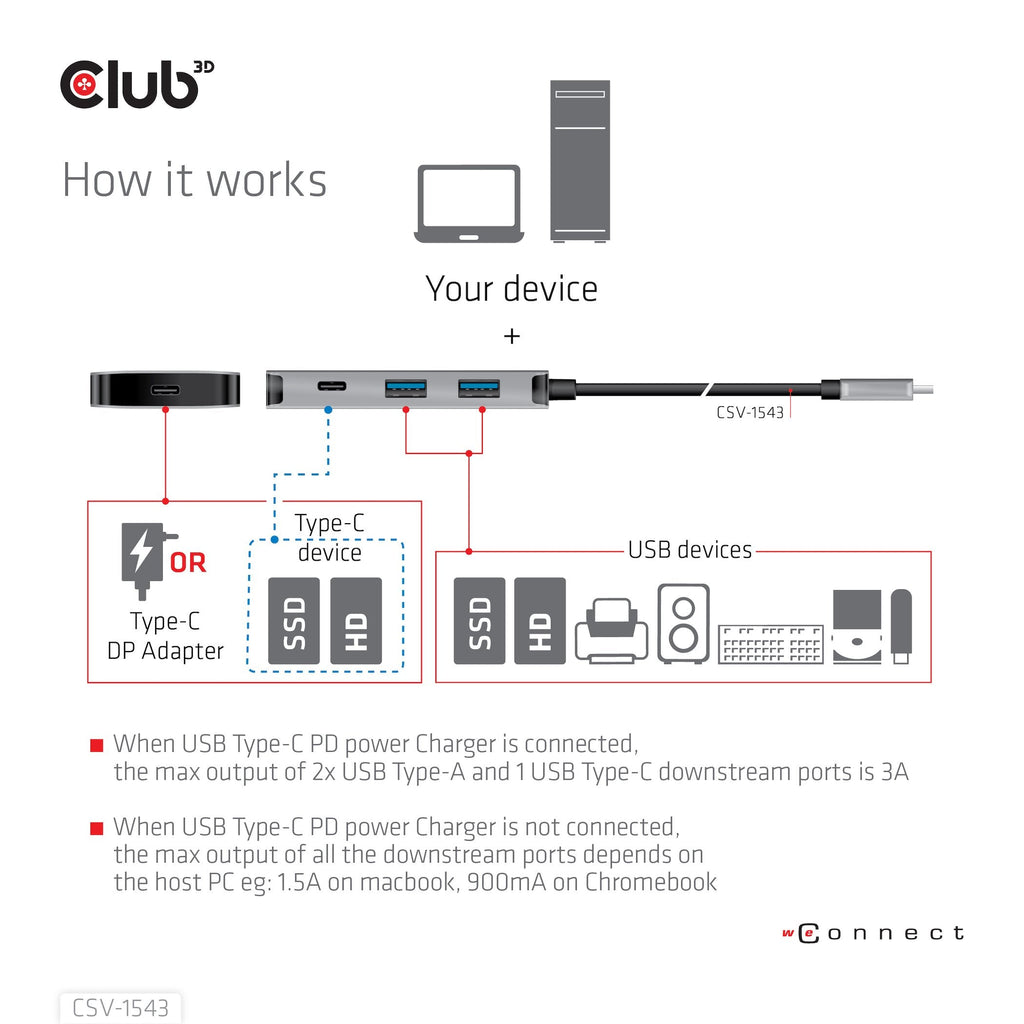 CLUB3D CSV-1543, USB 3.2 Gen 2 (3.1 Gen 2) Type-C, 100 W, Negro, Plata, USB 3.2 Gen 2 (3.1 Gen 2) Type-A, USB 3.2 Gen 2 (3.1 Gen 2) Type-C, ROHS, FCC, CE EMI, USB
