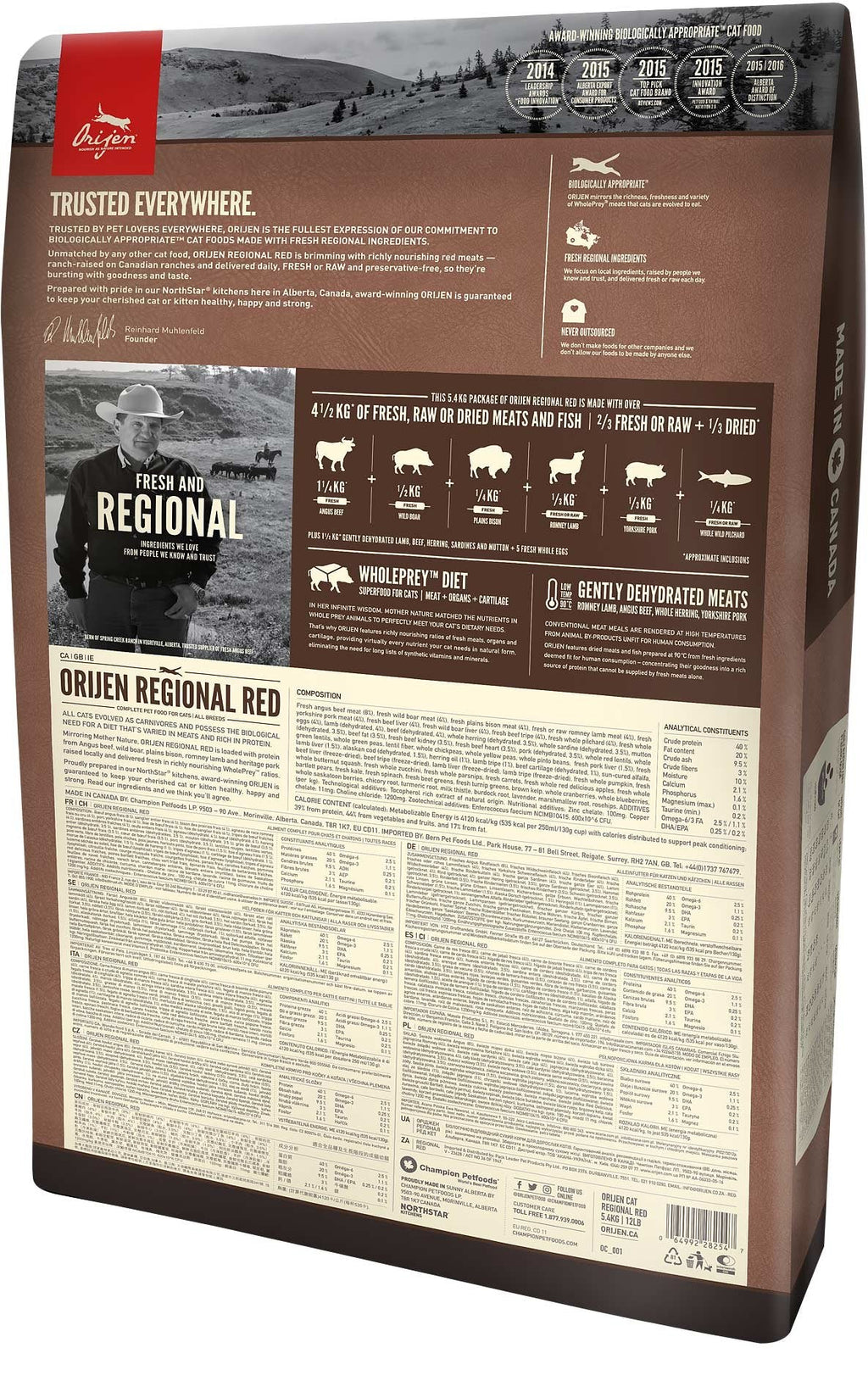 Orijen Regional Red alimento seco para gatos 340 g Adulto Ternera, Cordero, Cerdo