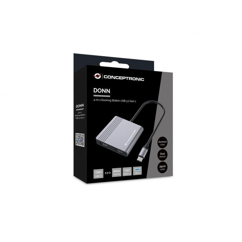 Conceptronic Adaptador Usb-C->2xhdmi,Usb-C Pd,1xusb3.0 0.25 Gr
