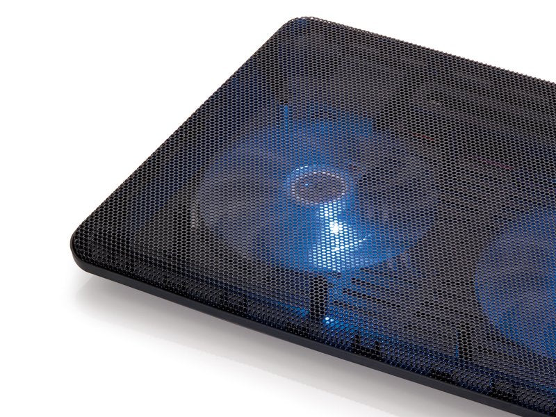 La plataforma de refrigeración para equipos portátiles de Conceptronic contribuirá a un funcionamiento seguro y confortable de su dispositivo portátil mediante dos potentes y, al mismo tiempo, silenciosos ventiladores. La plataforma de refrigeración recibe alimentación a través de una interfaz USB, por lo que puede trabajar en cualquier lugar sin necesidad de una toma de corriente. La plataforma presenta un diseño inteligente con una hendidura para el cable USB, lo que evita que este se enrede y se dañe. Se trata de una contribución práctica y versátil para las personas que trabajan y juegan fuera de casa.