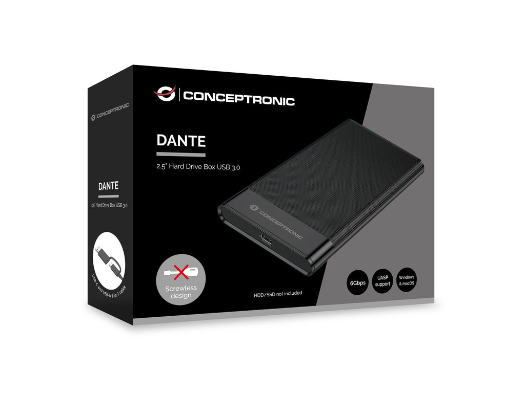 Conceptronic DANTE06B, Carcasa de disco duro/SSD, 2.5", Serial ATA III, 6 Gbit/s, Conexión USB, Negro