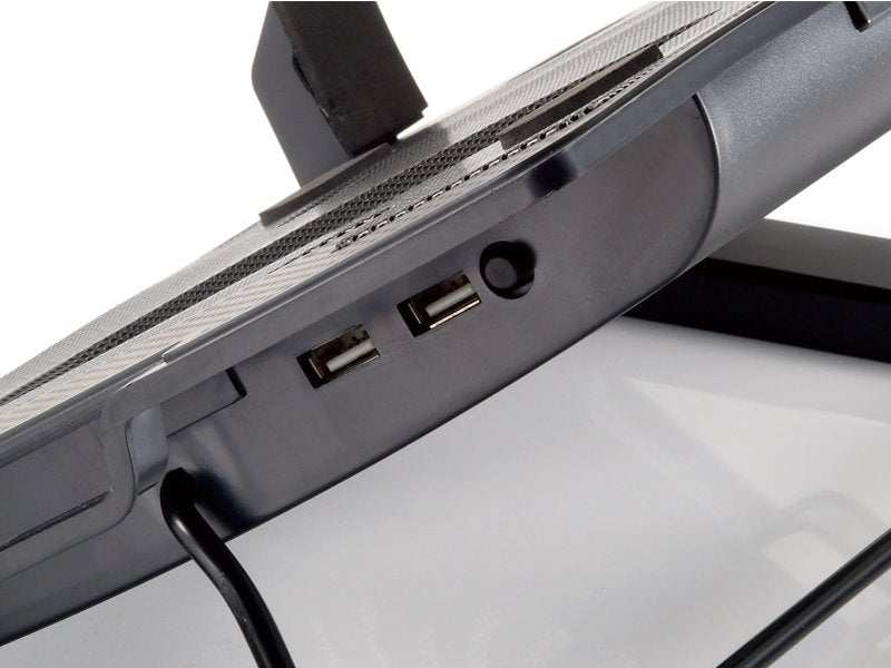 La base plegable de refrigeración para equipos portátiles de Conceptronic es la base de refrigeración multifunción perfecta para cualquier situación. El versátil dispositivo se puede utilizar como base para equipos portátiles o como plataforma de refrigeración y recibe alimentación a través de una interfaz USB, por lo que se puede utilizar de forma independiente de una fuente de alimentación externa. Como base, se puede ajustar con 5 ángulos diferentes para proporcionar el entorno de trabajo ideal para cualquier circunstancia. La base de refrigeración de Conceptronic cuenta con una superficie de malla metálica sofisticada con un potente y, al mismo tiempo, silencioso ventilador de 14 cm para evitar que los dispositivos se calienten en exceso. Una incorporación con estilo y muy útil para cualquier estación de trabajo móvil.