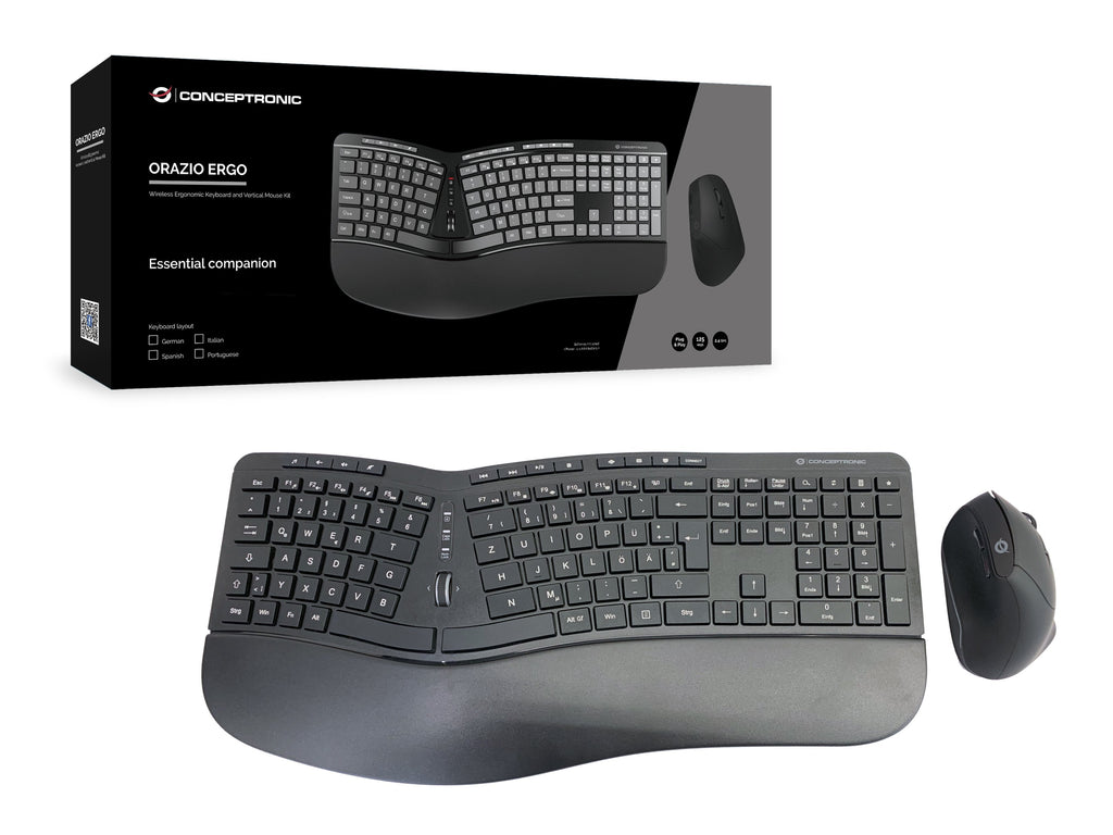 Conceptronic ORAZIO02DE, Completo (100%), Inalámbrico, RF inalámbrico, QWERTZ, Negro, Ratón incluido