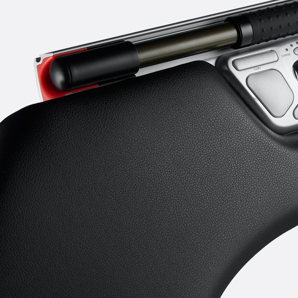 - RollerMouse Red Max ofrece un apoyo para antebrazo que se sujeta para el apoyo definitivo desde los codos a las manos mientras escribes y trabajas con el ratón.