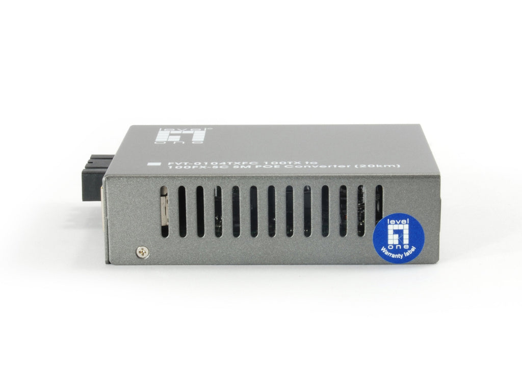 Los convertidores PoE de LevelOne cumplen con el estándar IEEE802.3af. El puerto 10/100 Base-TX detecta automáticamente velocidades de conexión de 10 o 100Mbps, auto-negocia modos half/full-duplex y auto-selecciona el tipo de medio MDI-X. FVT-0104TXFC con conector SC Mono-modo. Estos convertidores le proporcionarán a su red PoE la capacidad de acoplar conexiones de fibra a una distancia de hasta 20km.