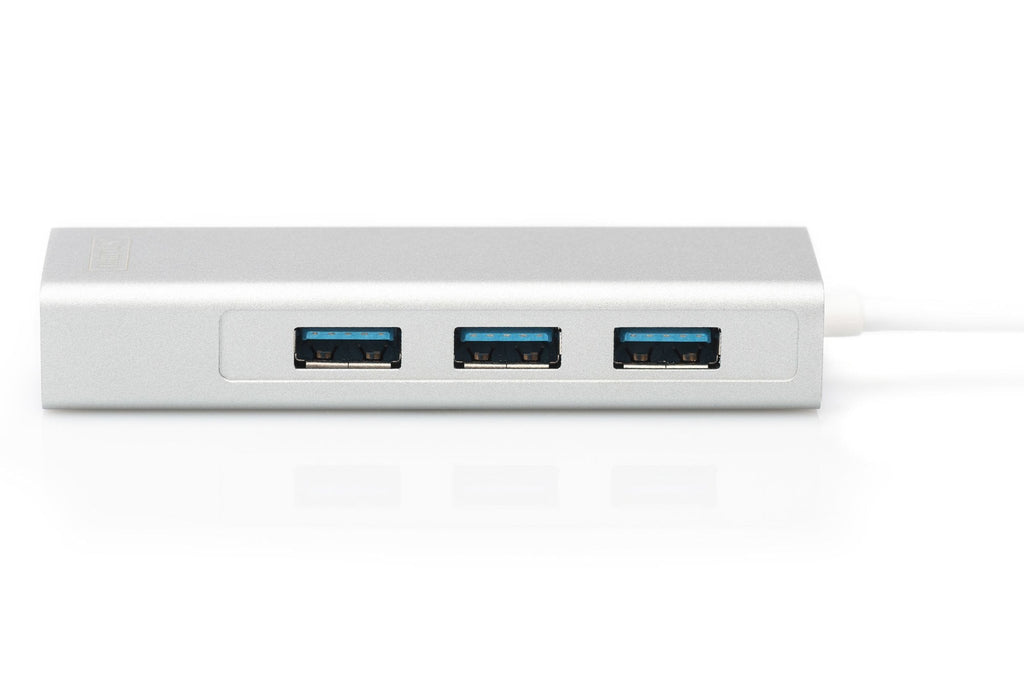 Con el adaptador LAN USB 3.0 3 puerto Hub & Gigabit de DIGITUS® podrá conectar 3 dispositivos adicionales USB High Speed a su Ultrabook™, portátil, Subnotebook, Macbook, Macbook Air, etc. Las impresoras, discos duros, dispositivos de almacenamiento flash, lectores de tarjetas, altavoces y muchos más se conectan sencillamente a través de la interfaz USB. Además este adaptador dota a su ordenador de un puerto Gigabit Ethernet adicional y lo hace apto para la red, ya que hoy en día hay muchos dispositivos que sólo se vinculan a ella mediante Wireless LAN.