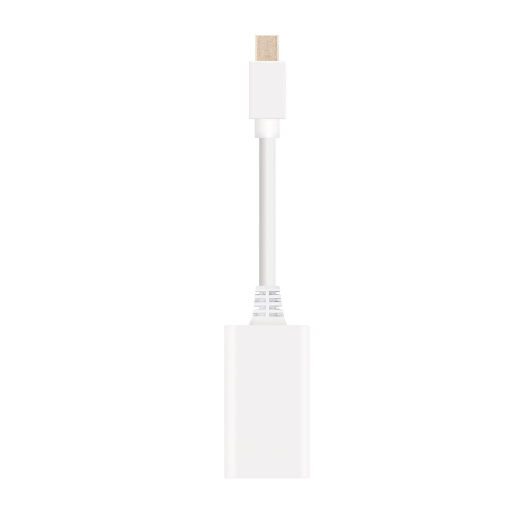 - Conversor mini DP a HDMI con conector mini DP (20 Pines) macho en un extremo y HDMI tipo A hembra en el otro.