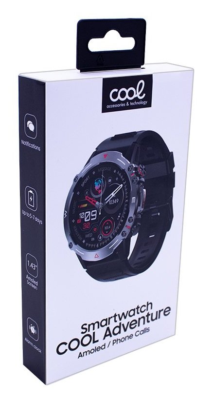 - Contenido del paquete: - Smartwatch COOL Adventure (con correa incluída de silicona universal de 22mm) - Cable de carga USB: magnético. - Manual de instrucciones en español, portugués e inglés.