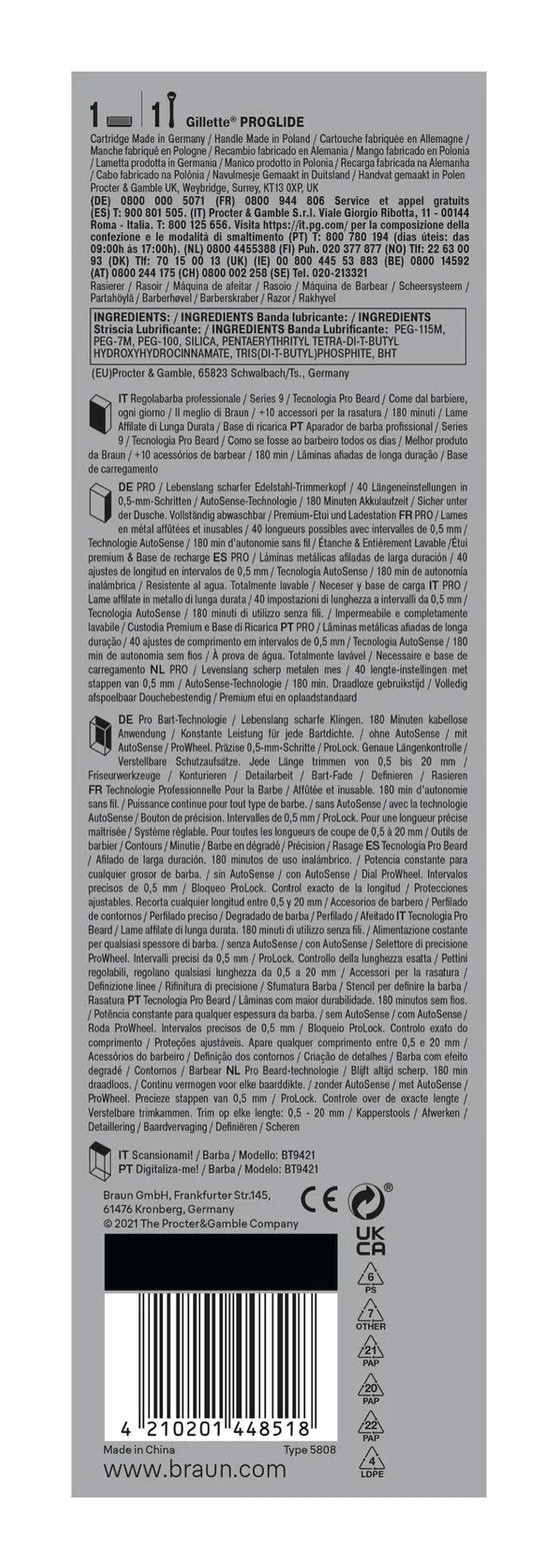 Braun BeardTrimmer 9 BT9421 depiladora para la barba Batería 40 Negro