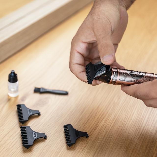 Incluye 4 peines guía (1 mm, 2 mm, 3 mm y 4 mm) que permiten conseguir una gran variedad de cortes de la forma más cómoda y precisa.