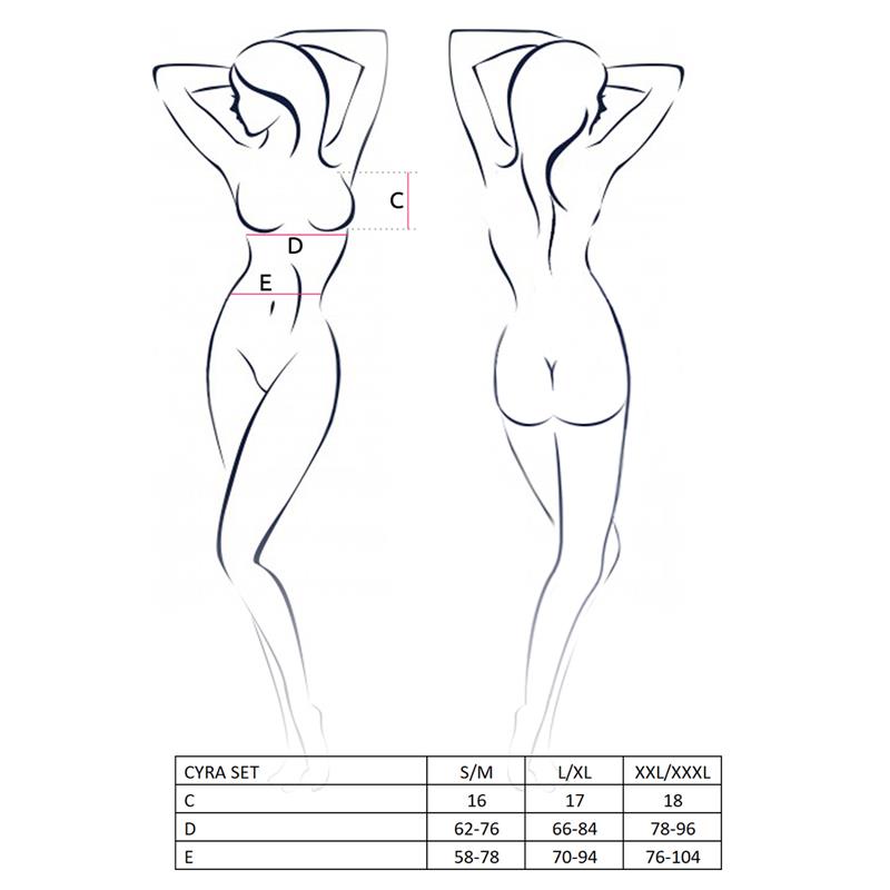 Si buscar un conjunto que deje con la boca abierta a tu pareja, no busques más. Este conjunto de sujetador y braguita-liguero son lo que necesitas. Con detalles en rojo que destacan sobre el negro y unos lazos estratégicamente colocados se convertirá en tu lencería favorita.