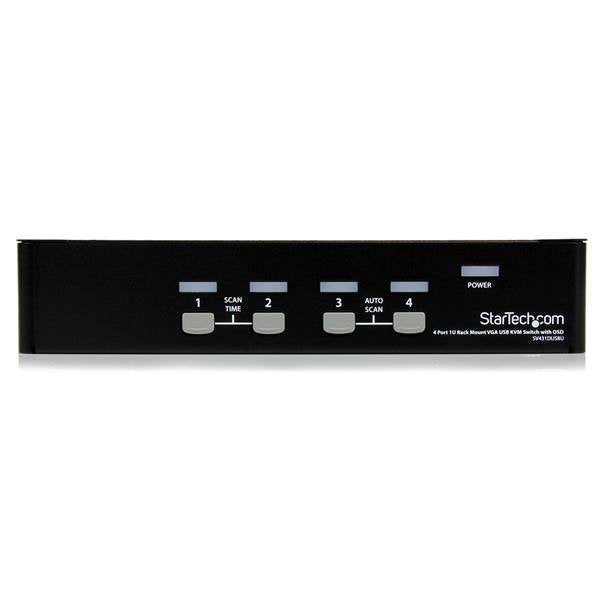 Este conmutador KVM USB con 4 puertos para montaje en rack de 1U, con OSD, modelo SV431DUSBU, le permite controlar varios ordenadores basados en USB mediante una sola consola (teclado y ratón USB, monitor).