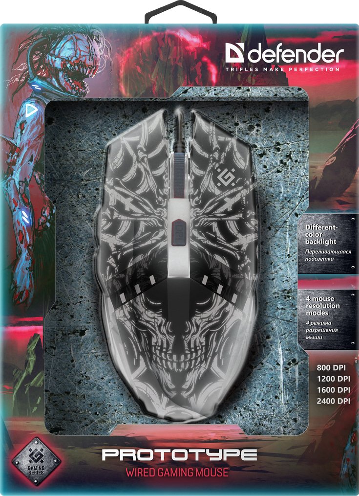 Defender GM-670L, Ambidextro, Óptico, 2400 DPI, Negro