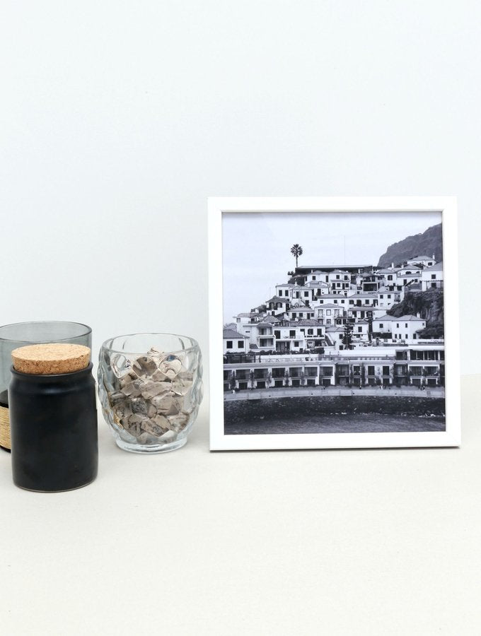 Deknudt S41JK1 30x30 hout wit, smalle lijst, Expositor de pie retroiluminado, Vidrio, Madera, Blanco, Mesa, Pared, 30 x 30 cm, Rectangular