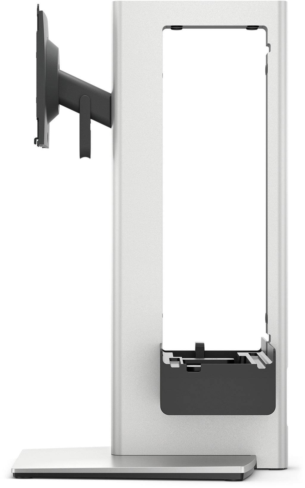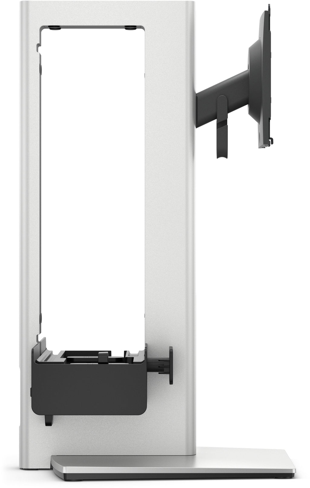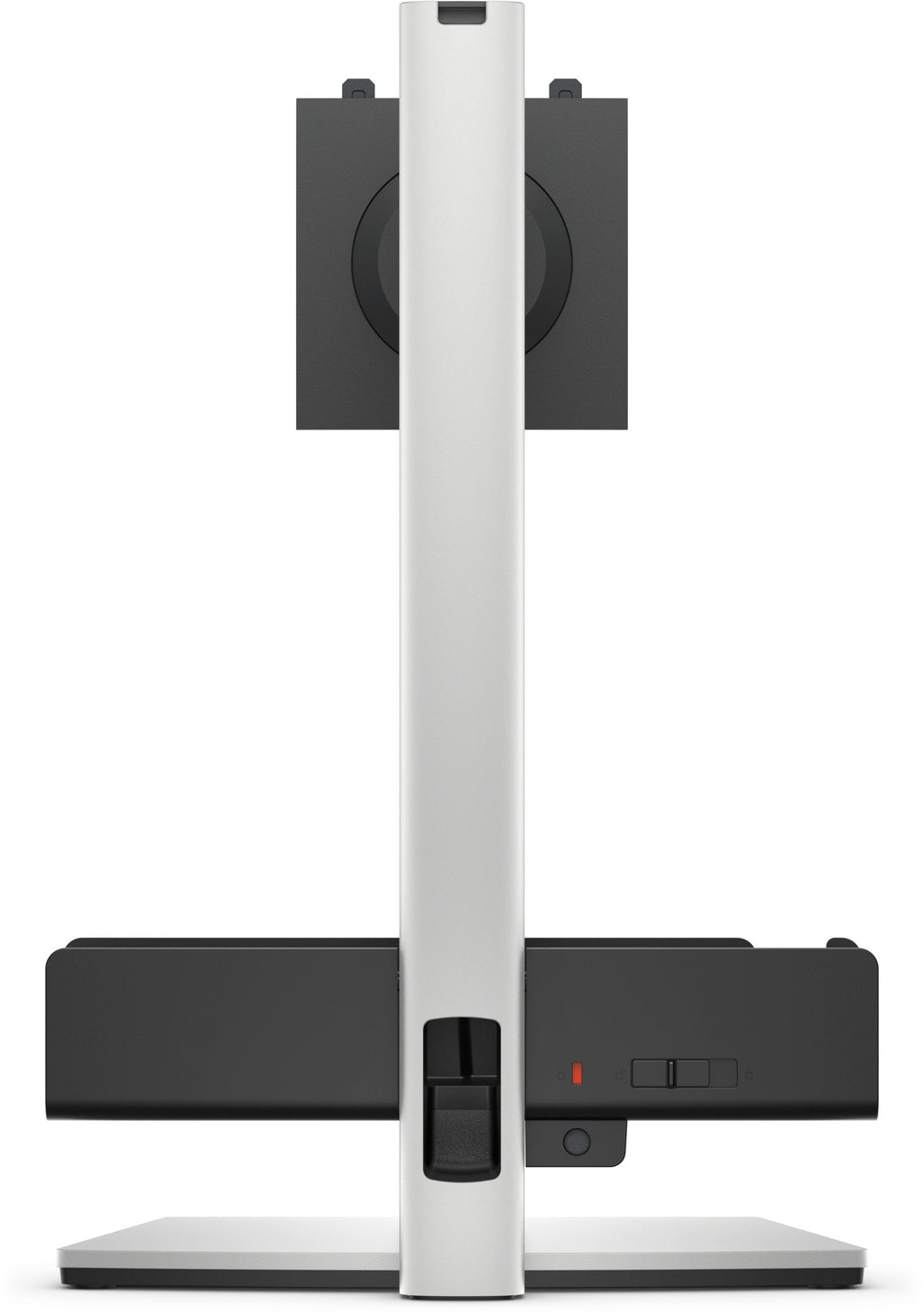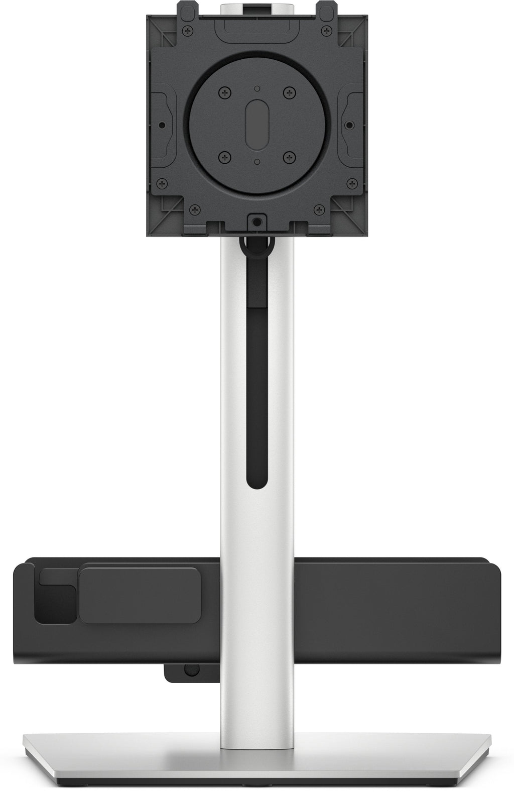 Ordena tu espacio de trabajo con un soporte compacto que cuenta con una gestión mejorada de los cables, una tapa para cables y un asa retráctil para facilitar el transporte.